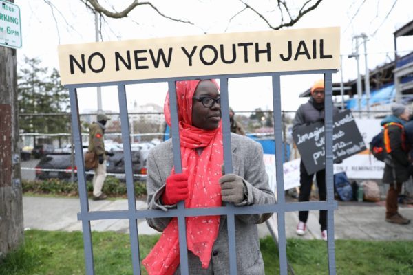 “I’m here to stop construction of the new youth jail, because caging kids should never be an option. This jail would inflict harm and trauma, perpetuate systemic racism, and cannot exist in the world we are fighting for, let alone in the sanctuary Seattle claims to be. I’m here to yell along with the countless organizations and communities who for years have told Dow and King County that we must do better – no new youth jail!”